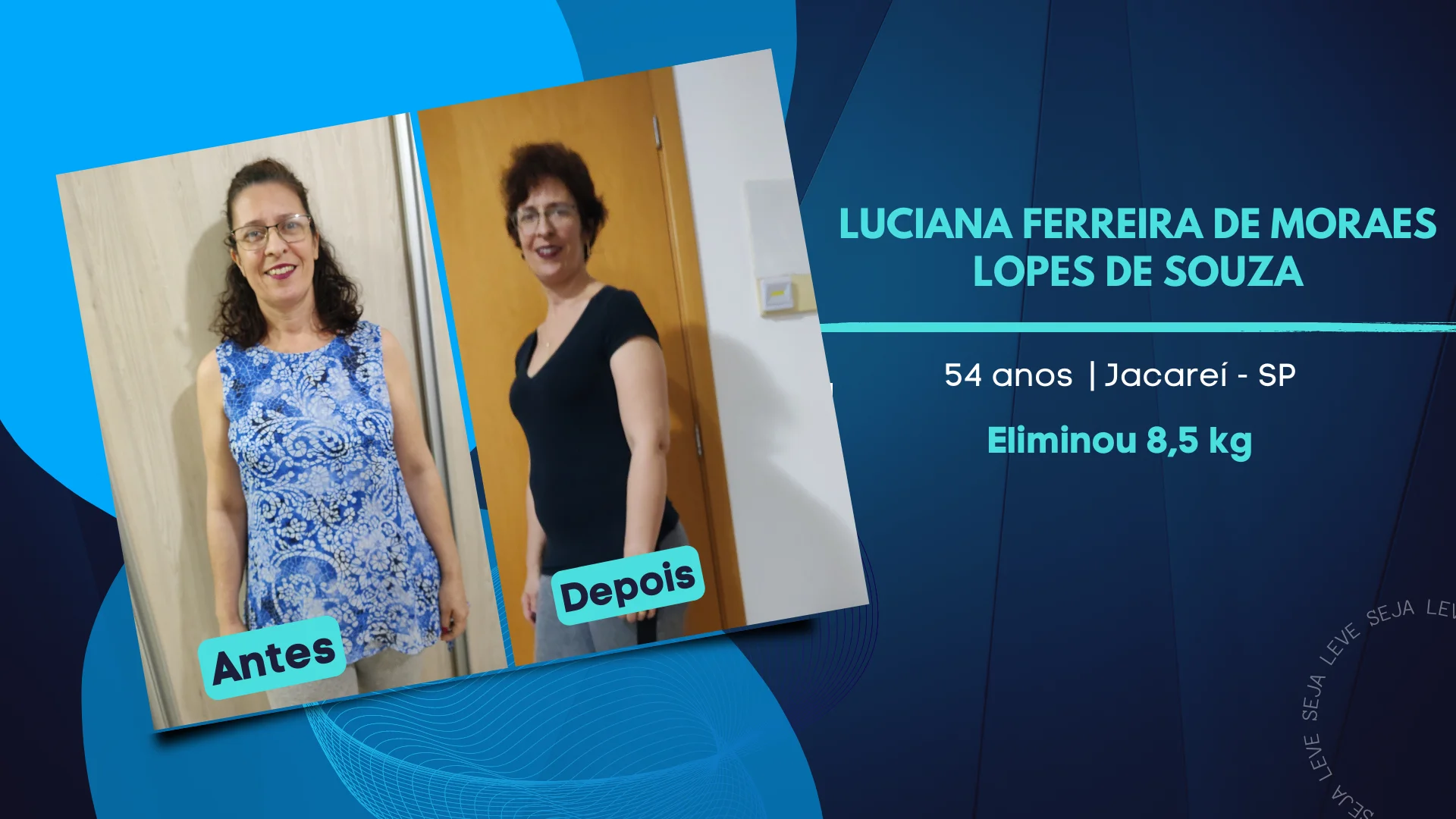 Após entrar para o Leve e eliminar 8kg e 11 cm de abdômen não sinto mais dores .